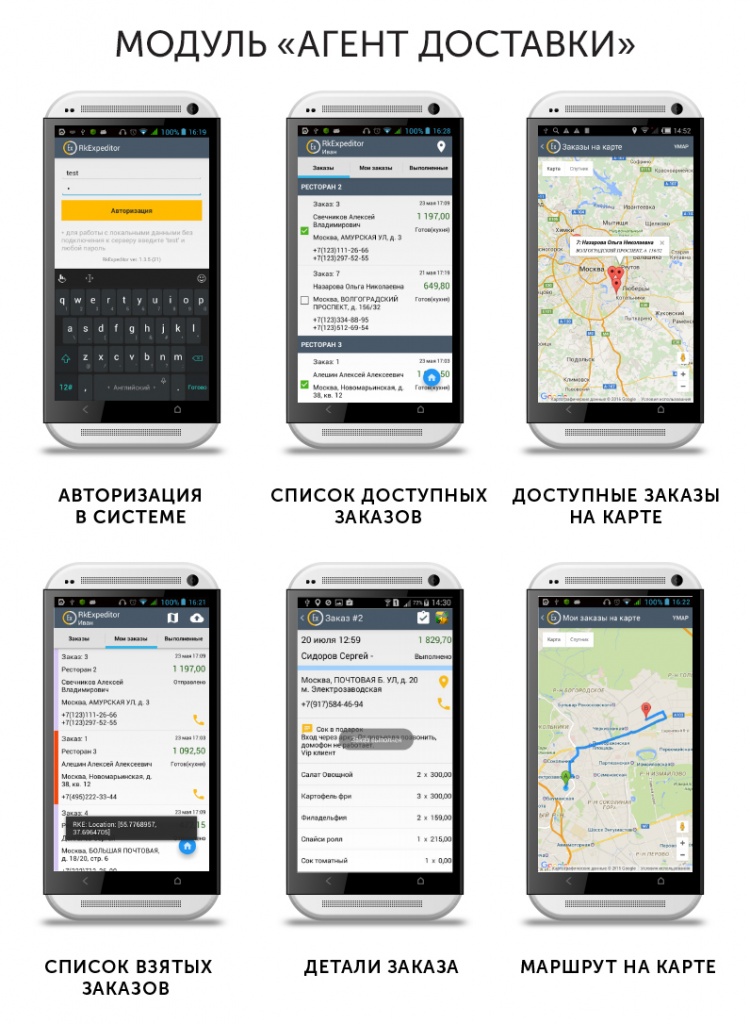 Этот модуль устанавливается на мобильные устройства, служит для упрощения работы курьеров.